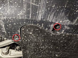 - 拆下用于将左前轮拱衬垫固定到裙板上的卡子(3 个)。