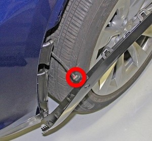 - 安装用于将左前轮拱衬垫固定到裙板上的卡子(3 个)。