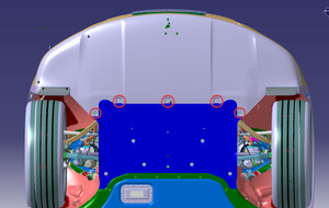 将左前轮整流罩安装到裙板上,然后安装用于将整流罩固定到裙板上的螺栓(2 个)。