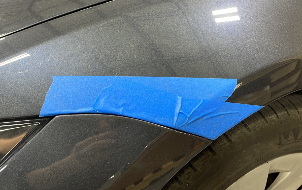 在左右前翼子板靠近前饰板的边缘粘贴胶带。