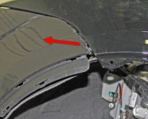 注这是为了防止从车辆上松开前饰板时,可能会损坏翼子板漆面的情况。