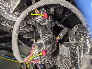 - 松开锁片,然后断开前饰板总成电气连接器(2 个)。