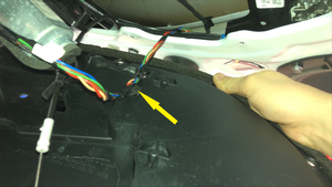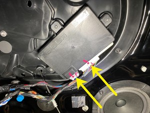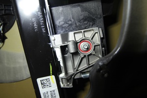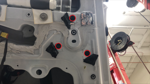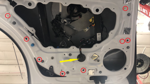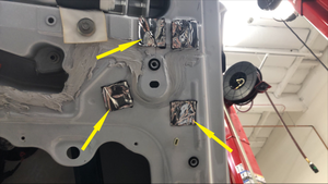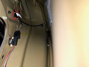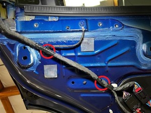 去掉贴纸,然后将新的托架安装到车门蒙皮上,注意线束槽应位于底部位置