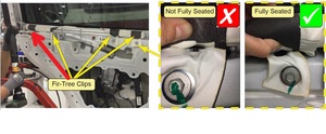 注4 个卡子,将第二排头部安全气囊垂直向上提起,就可以看到树形卡扣夹,将其安装到左后车门上,确保冷杉树夹已完全就位