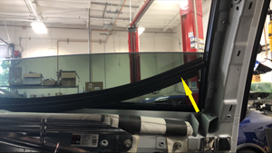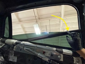 注1 个卡子,建议请助手帮忙,请从车辆外部开始操作,将车窗前部向车辆后部方向拉,然后将车窗从车门上提起并取下