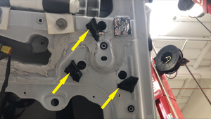 松开用于将车窗后部固定到升降器上的卡子,然后将玻璃从车辆上拆下