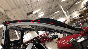 注4 个卡子,1 个双面胶带,请注意不要损坏漆面,从左侧鹰翼门前部开始,松开卡子和双面胶带