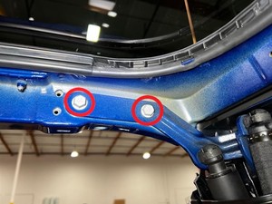 拆下用于将接地线固定到左侧鹰翼门下部的螺栓