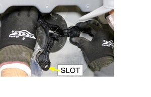 - 使释放缆索穿过左侧封闭板,安装缆索