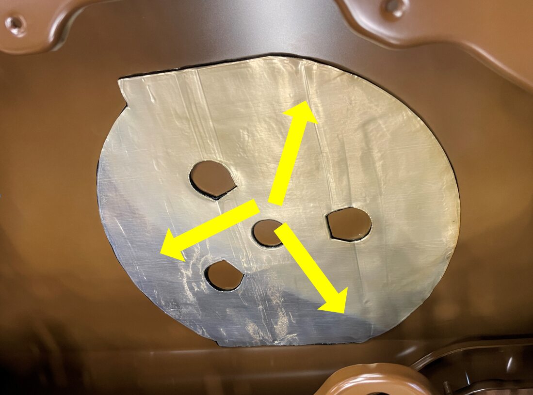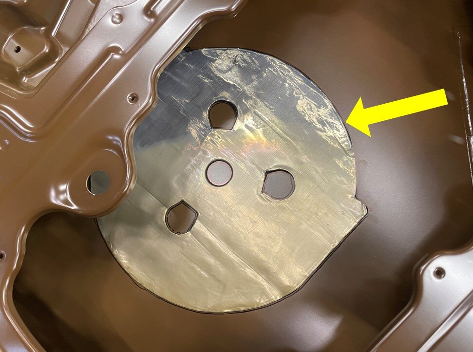 注Place the patch with the wrap on the door and note the correct orientation, remove the wrap without touching the butyl area, clean the door installation location with IPA wipes one more time