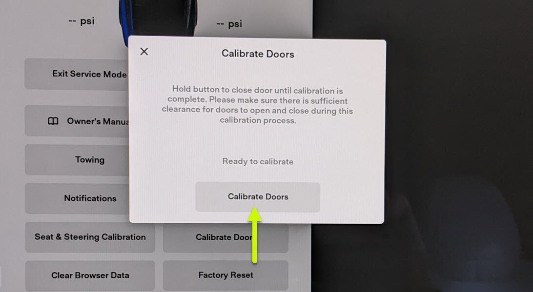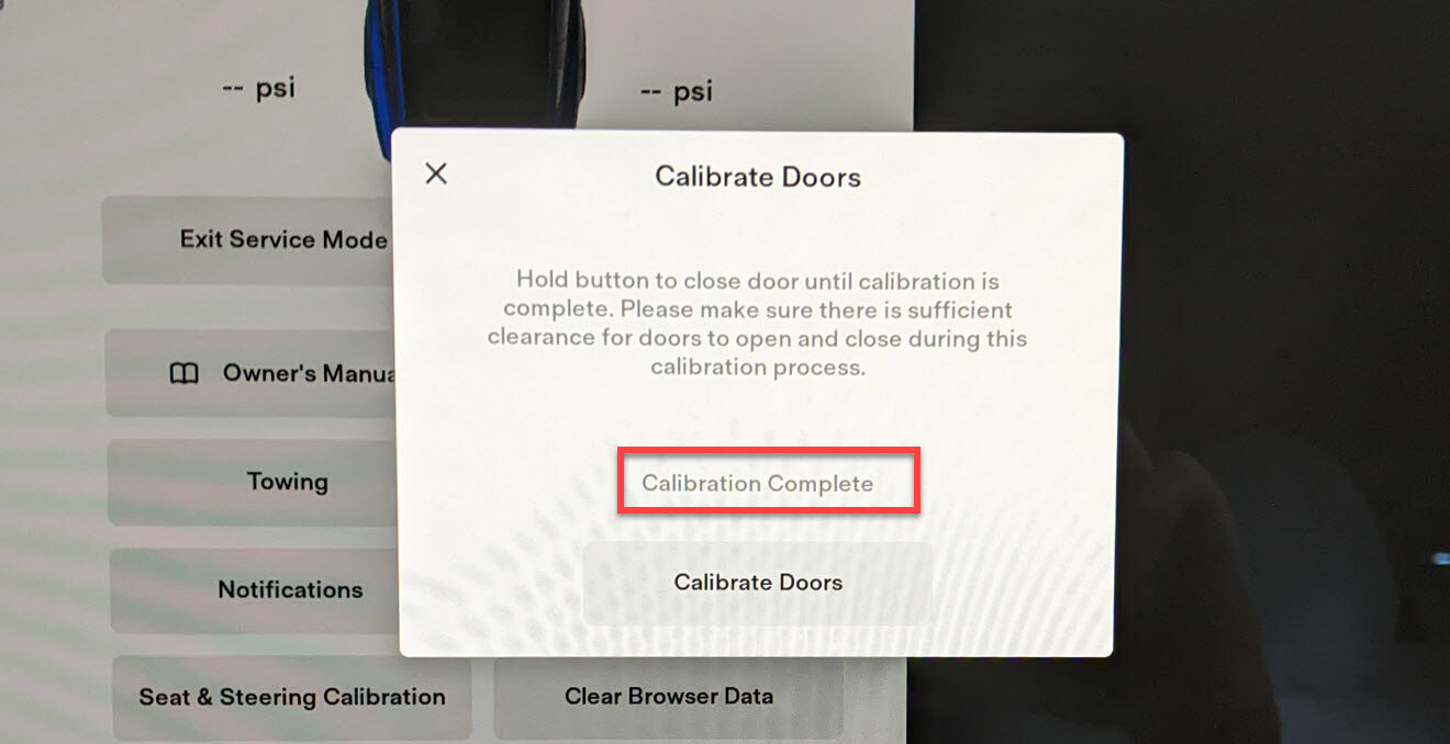 注Calibration required after LV system is powered down > Service > Calibrate Doors > Hold down Calibrate doors until doors cycle > Calibration Complete Message will appear