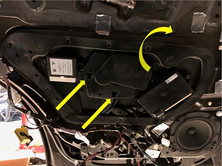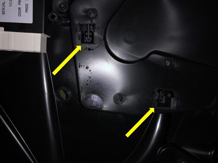 注2x tabs, Pull LH closeout panel away from door and lift window motor up to release