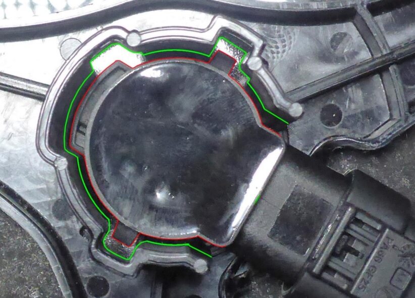 - Install spacer, spring, and cap to secure LH ultrasonic sensor