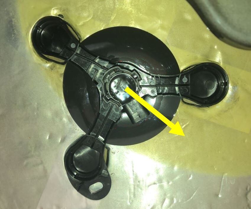 注Use heat gun to apply heat up to about 55 Celsius or 131 Fahrenheit and distance around 18 cm diameter of sensor carrier assembly to cover the 3 mounting areas, Used one hand to feel the areas behind the door skin to assure the heating areas locations