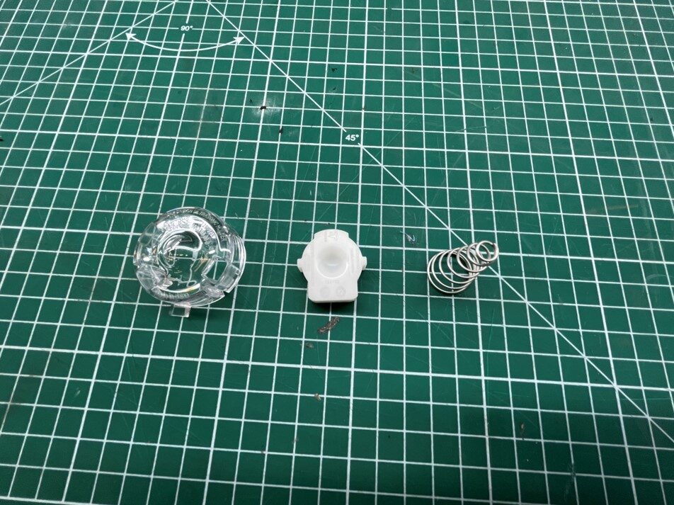 - Remove spacer, spring, and cap from LH ultrasonic sensor