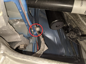 将高压电池接地线布设在左前铸件凸台后面,然后安装将接地线连接到高压电池的螺栓。