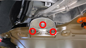 - 拆下将左侧后副框架剪力板固定到高压电池的螺栓(2 个),然后从高压电池上拆下剪力板。