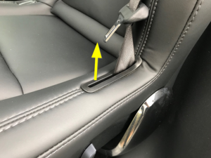 将左侧第二排安全带锚固件孔罩放入座垫中,然后固定将孔罩连接到座垫的锁片(4 个)。