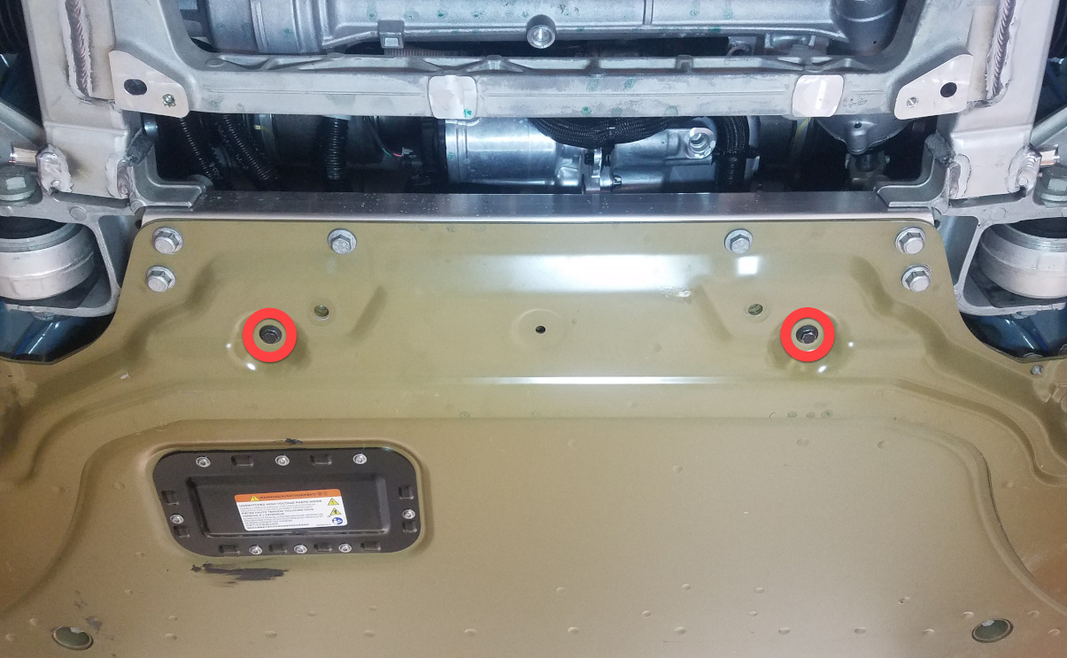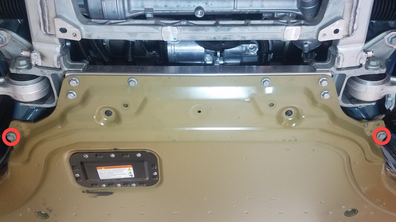 - 拆下将前滑板固定到前副车架的大号螺栓(4 个),然后将滑板从车辆上拆下。