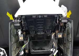 - 拆下中控台后部亮条。请参阅 亮条 - 中控台 - 后(拆卸和更换)。