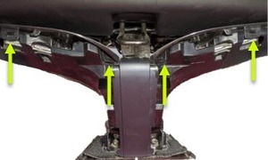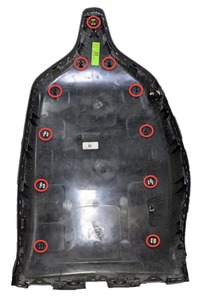 - 将第二排左侧座椅后饰条放到座椅总成上,然后固定将饰条固定到总成上的锁片(5 个)。