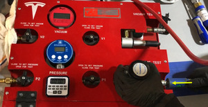 缓慢地打开调压器阀门,等待冷却液从高压电池中排出。