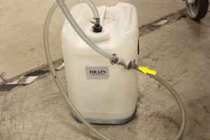 - 将冷却液小车排放软管固定到功率转换系统排放适配器和冷却液排放容器。