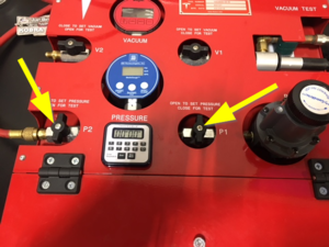- 将压缩空气管路从压力测试固定装置上断开。
