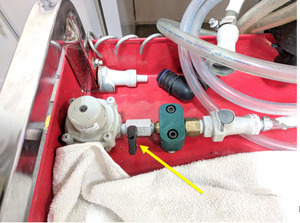 - 当冷却液不再流出时,关闭调压器阀门。