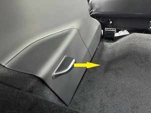 松开将侧饰板毡毯连接到系带的后备箱左侧系紧环。
