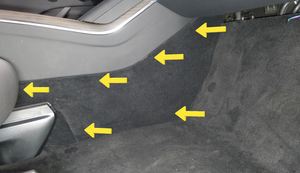 注Fold RH primary support carpet up, Rotate RH footrest panel out of vehicle