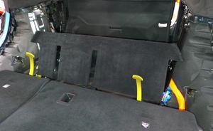 - 将第二排后底板安装到车辆上,然后安装将底板固定到车辆上的卡子(2 个)。