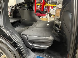 - 抬起第二排后底板的后部,将底板从座椅后面滑出,然后将底板从车辆上拆下。
