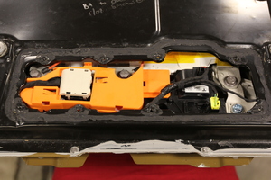 - 拆下并弃用将高压电池后检修板固定到高压电池的螺栓(8 个)。