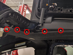 拆下将顶篷的左前端固定到车辆上的螺钉。