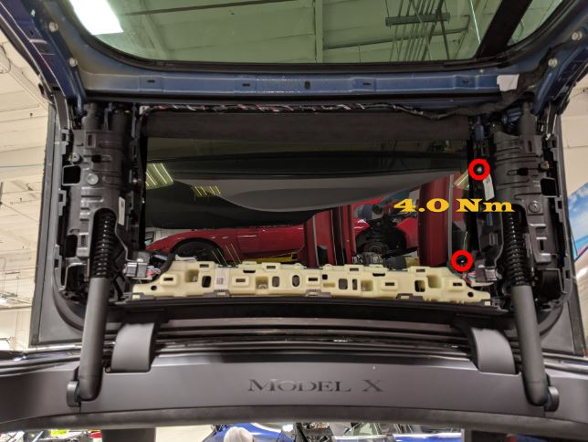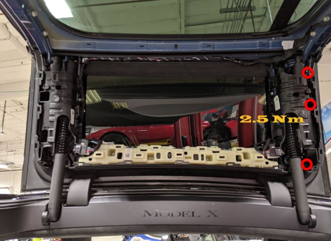 2.5 Nm (1.8 lbs-ft) - 将线束卡子安装到左后车门饰板后端上部支架上。