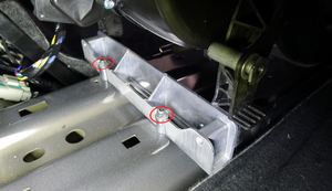 拆下将仪表板底座固定到中央趾板支架上的螺栓(2 个)。