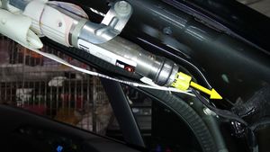 注同时拉下弹簧锁,松开安全气囊连接器。