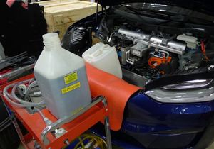 - 将冷却液重新加注工具从车辆上拆下。