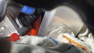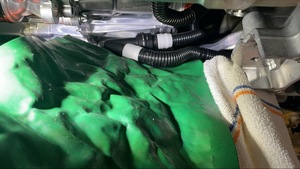 - 在前驱动单元左侧区域下方放置吸收性材料,以防止冷却液溢出到高压电池上。