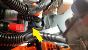 - 安装将高压电池至前驱动单元变流器软管固定到高压电池外壳的卡子。