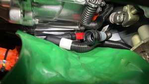 松开将高压电池至前驱动单元变流器软管固定到变流器的软管卡子,将软管从变流器上拆下,然后在变流器上安装一个塞子。