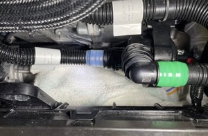 - 在车辆左前侧下方放置冷却液收集器