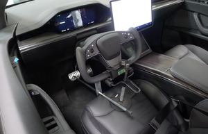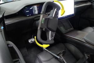- 拆卸制动踏板抑压器、方向盘水平仪和方向盘托架,挂入“驻车”档。