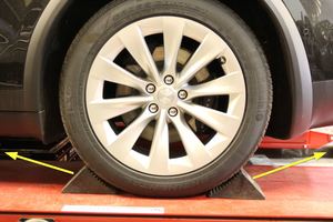 - 放置并升起支架,以在行驶高度模拟左后悬架。