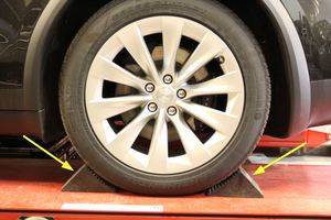 注推动驾驶位侧后轮胎;向前推动车辆后,插入轮挡;转动板和侧板应自动解锁。