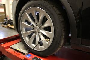 将轮毂轴承千斤顶适配器安装到左后轮毂轴承上。