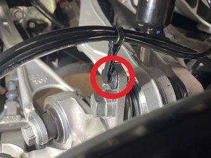 注1 个螺栓,1 个旗形螺母,21 毫米,150 Nm;用油性记号笔标记。