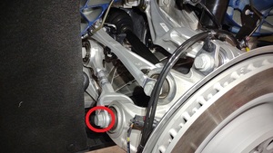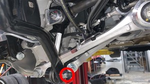 拆卸将左后下前连杆固定到转向节的螺栓。