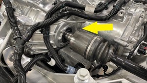 将左侧后半轴安装到后驱动单元中,然后将半轴用力压入驱动单元,使半轴完全就位。
